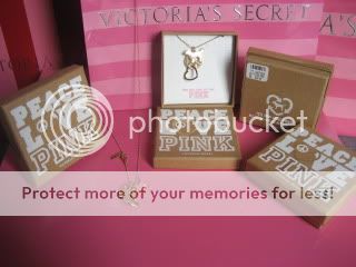 If you're looking for a true steal on Victoria's Secret PINK jewelry, here's a deal you simply can't pass up! We have the Victoria's Secret PINK charm necklaces in gold. Each necklace is new, in box and retails for $28.50. Necklaces have the PINK Dog logo, a heart and a peace sign as one charm at the end.