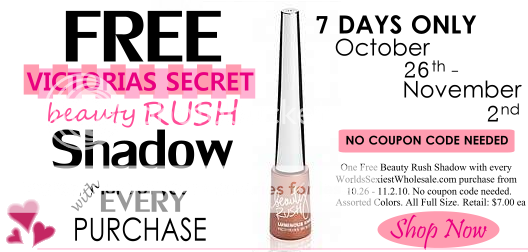Starting today (10.26.10) we are giving away one FREE Victorias Secret Beauty Rush Shadow with EVERY purchase!