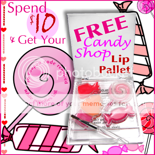 Get your absolutely ADORABLE FREE candy shaped Lip Gloss Quad Pallet with ANY $10 purchase! These gorgeous pallets feature four candy shaped glosses and one brush; all inside a slimline compact!